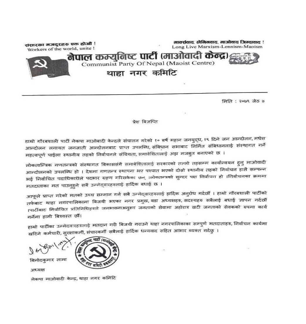 जनमतको उच्च सम्मान गर्नुः माओवादी केन्द्र