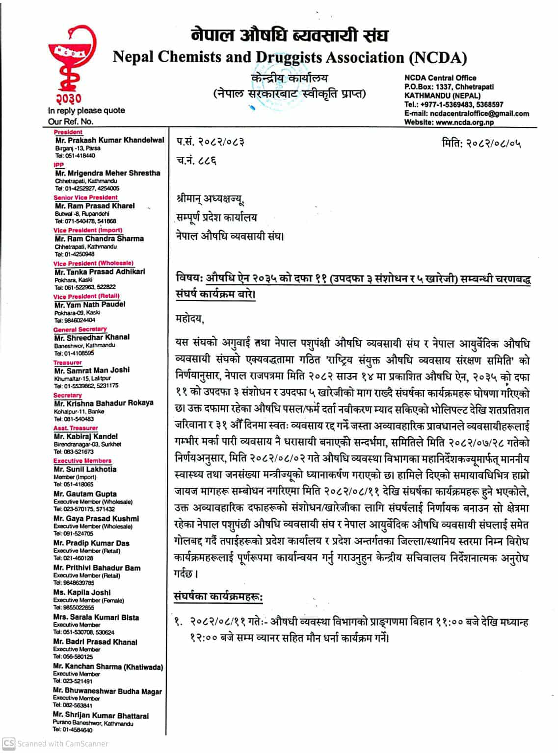 औषधि व्यवसायी आन्दोलित : आज एक घण्टा औषधि पसल बन्द हुने