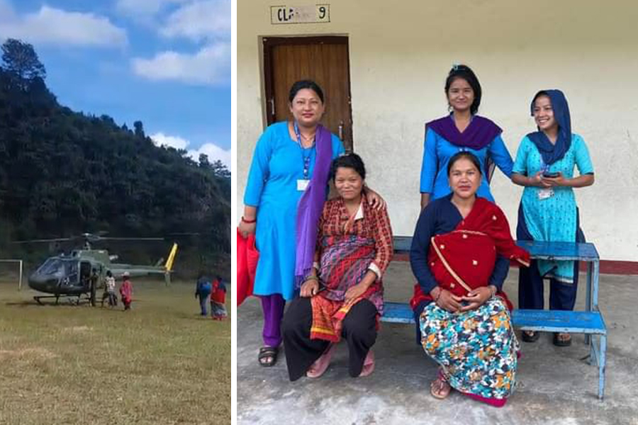 सिस्नेरीबाट पाँच दिनदेखि अलपत्र दुई गर्भवतीको हेलिकप्टरबाट उद्दार