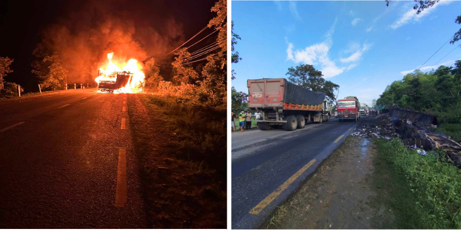 मनहरीमा ट्रक जुधेपछि आगलागी, तीन जनाको मृत्यु