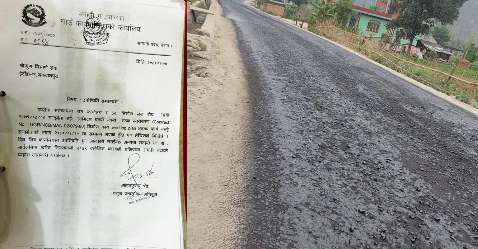 निर्धारीत समयमा कालोपत्रे नभएकोमा पालिकाको चिन्ता
