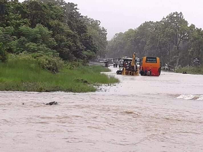 बागझोरामा आएको बाढीका कारण यातायात सेवा अवरुद्ध
