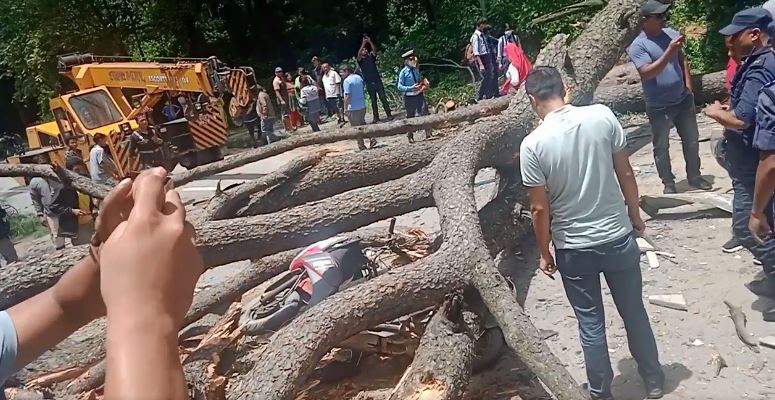 सल्लाघारीमा रुख ढलेर बस र स्कुटर थिच्यो, तीनको मृत्यु, १२ घाइते