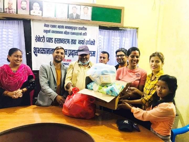 सञ्चारिकालाई महासंघद्वारा सेनेटरी प्याड हस्तान्तरण