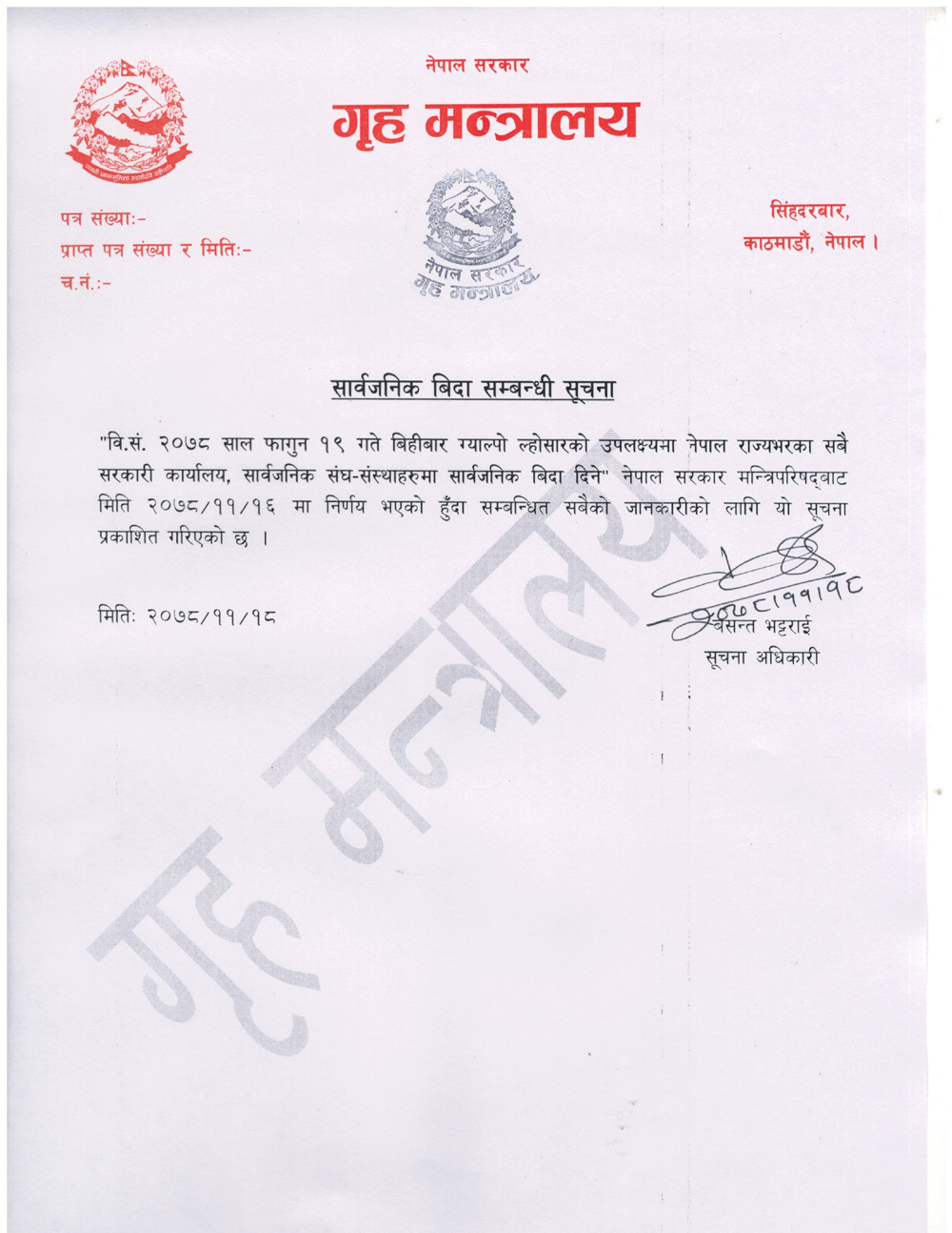ग्याल्पो ल्होसारमा सार्वजनिक बिदा दिने निर्णय
