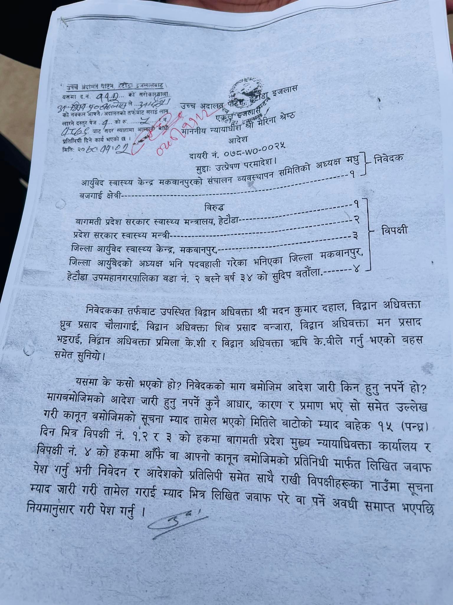 स्वास्थ्यमन्त्रीको निर्णय कार्यान्वयन नगर्न अदालतको आदेश्
