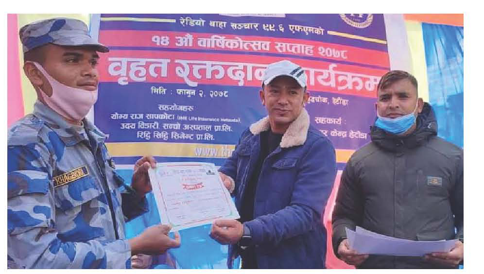 ५२ जनाद्वारा रक्तदान