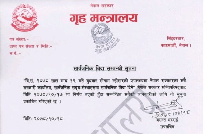 माघ १९ गते देशभर सोनाम ल्होसारको बिदा