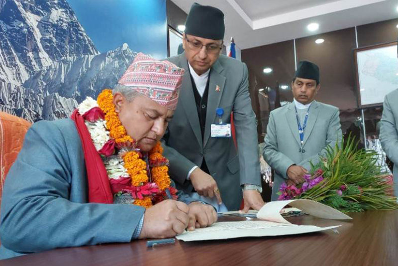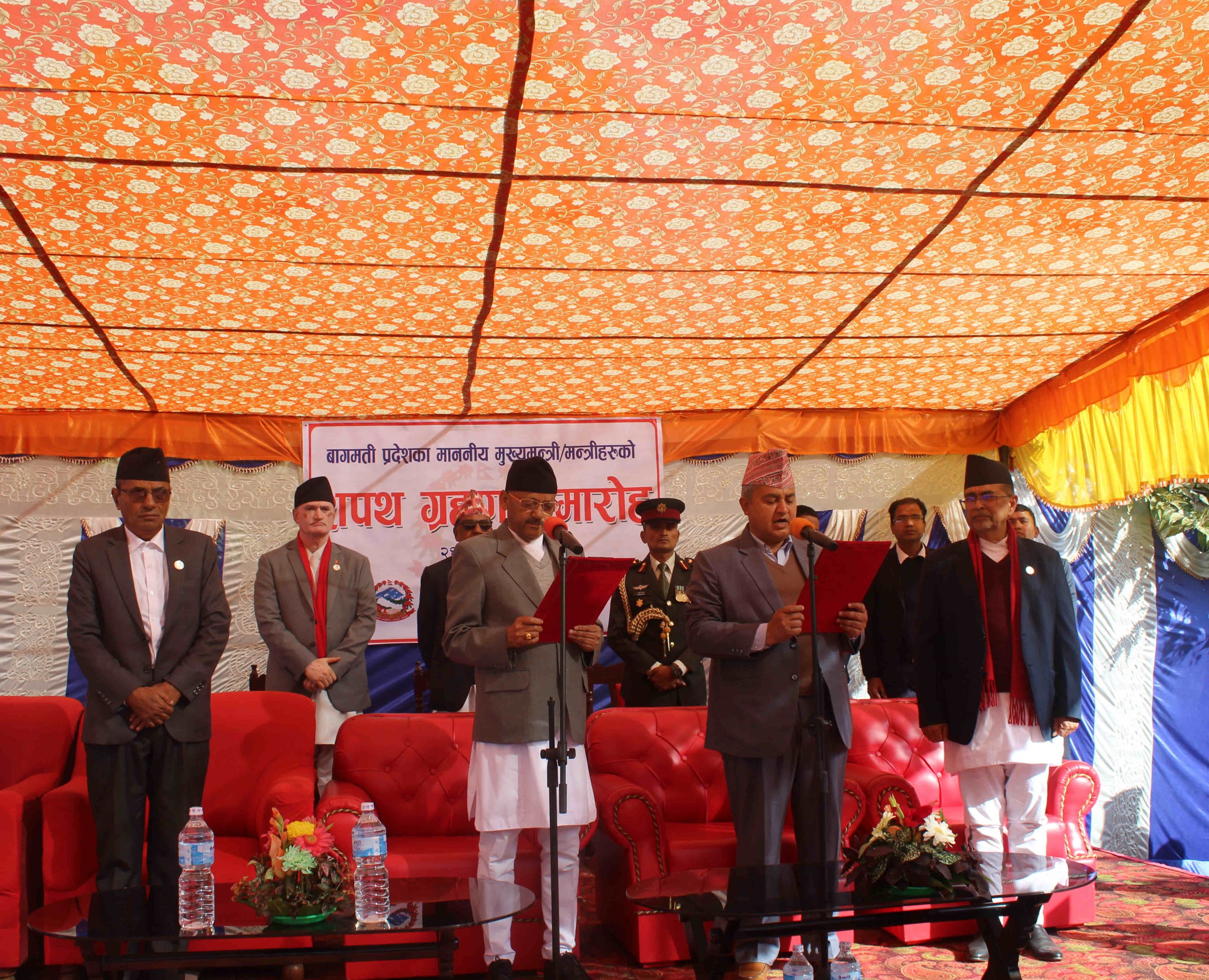 मुख्यमन्त्रीसहित ३ मन्त्रीले शपथग्रहण गर्दै