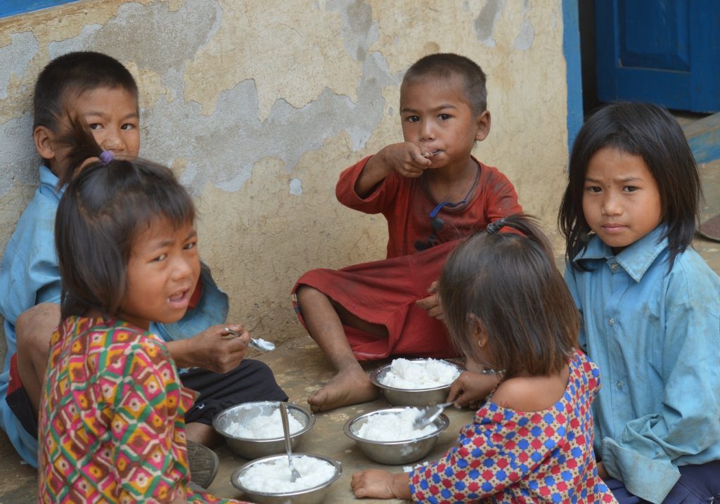 खाजा पाएपछि खुशीः मकवानपुरको विकट राक्सिराङ गाउँपालिका–९ सिमलटारस्थित श्रीप्राथमिक विद्यालयमा दिवा खाजा खाँदै चेपाङ बालबालिका । विद्यालयमा दिवा खाजाको व्यवस्था भएपछि विद्यालय जाने विद्यार्थीको संख्या उलेख्य बढेको छ । विगतमा राक्सिराङका चेपाङ बालबालिका विद्यालय जाँदैन थिए । विद्यालयकी प्रधानाध्यापक मिठु लामिछानेका अनुसार एकवर्ष अघिसम्म विद्यालय आउन बालबालिकालाई घर–घरमा बोलाउन जानु पर्ने बाध्यता थियो । दिवा खाजाको व्यवस्था भएपछि भने विद्यालय आउने विद्यार्थीको संख्या ६९ पुगेको प्रअ लामिछानेले बताए । प्रत्येक दिन एक जनालाई १५ रूपैयाँ बराबरको खाजा विद्यालयमा नै बनाएर खुवाउने गरेको जनाइएको छ ।