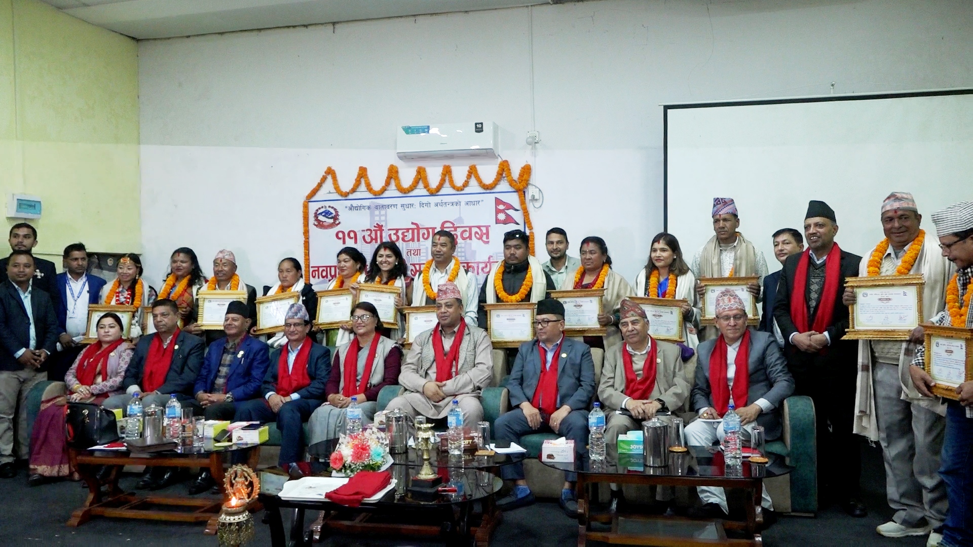 हेटौंडा, ९ मंसिर÷ बागमती प्रदेश सरकारले ११ औँ उद्योग दिवसका अवसरमा १४ जना नवउद्यमीलाई सम्मान गरेको छ । नवप्रवर्तन उद्यमी सम्मान अन्तर्गत प्रदेशका १३ जिल्लाबाट एक–एकजना र प्रदेशभरिबाट एकजना सर्वोत्कृष्ट गरी कुल १४ जना उद्यमीलाई नगदसहित सम्मान गरिएको हो । उद्योग, वाणिज्य, भूमि तथा प्रशासन मन्त्रालयले आर्थिक वर्ष २०८२÷८३ मा स्वीकृत कार्यक्रममा आधारित रही मंगलबार मुख्यमन्त्री ईन्द्रबहादुर बानियाँको प्रमुखउपस्थितिमा जिल्लागत उद्यमीलाई सम्मान गरिएको हो । यसवर्षको सर्वोत्कृष्ट उद्यमीकारुपमा नुवाकोट, म्यागङ गाउँपालिका–३ देउरालीस्थित चिया कृषि फर्मका सेल्कर तामाङ सम्मानित भएका छन् ।