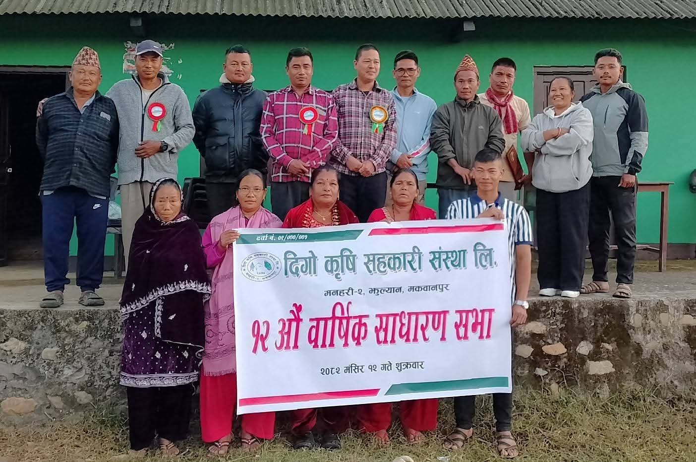 हेटौंडा- मकवानपुरको मनहरीमा रहेको दिगो कृषि सहकारी संस्था लिमिटेडको अध्यक्षमा पुनः चन्द्रसिं स्याङ्तान चयन भएका छन् । मनहरी गाउँपालिका–२ मा रहेकोे दिगो कृषि सहकारी संस्था लिमिटेडको १२ औ वार्षिक साधारण सभाबाट स्याङतानको अध्यक्षतमा सर्बसम्मत ९ जना कार्यसमिति चयन भएको हो । कार्यसमितिलाई वडाअध्यक्ष राजकुमार पाख्रिनले सफल कार्यकालको बधाई तथा शुभकामना व्यक्त गरेका छन् । नवगठित कार्यसमितिको उपाध्यक्षमा दिलबहादुर बुलुन, सचिवमा आत्माराम रुम्बा, कोषाध्यक्षमा मनमाया घलान रहेका छन् भने सदस्यमा गोमा घलान, गणेशबहादुर स्याङ्बो, रामकुमार स्याङ्तान, रचना मुक्तान, डिलमाया थिङ चयन भएका छन् ।