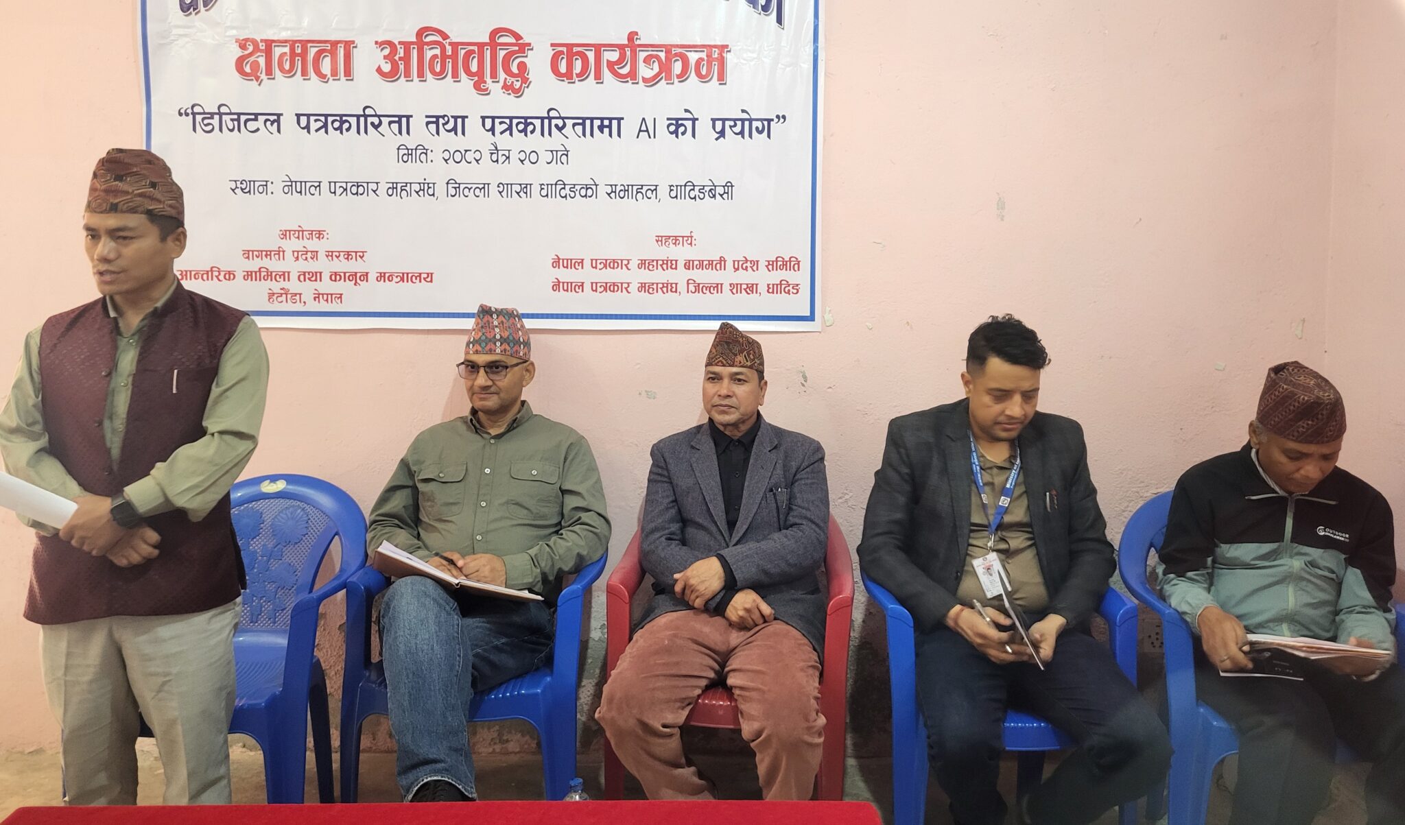 धादिङका प्रमुख जिल्ला अधिकारी विजयराज सुवेदी र जिल्ला समन्वय समितिका उपप्रमुख कुलमान विश्वकर्माले सञ्चारकर्मीका लागि सञ्चालित डिजिटल पत्रकारिता तालिमले जिल्लाको पत्रकारितालाई थप जिम्मेवार र व्यावसायिक बनाउन महत्वपूर्ण भूमिका खेल्ने विश्वास व्यक्त गरे । तालिमबाट प्राप्त सीपलाई व्यवहारमा उतार्न आग्रह गर्दै सञ्चार क्षेत्रलाई व्यवस्थित बनाउँदा मात्रै लोकतन्त्र बलियो हुने नेपाल पत्रकार महासंघ धादिङका अध्यक्ष सीताराम अधिकारीले बताए । तालिममा डिजिटल युगमा पत्रकारिताको बदलिँदो स्वरुप, प्रविधिको प्रभाव तथा एआईको प्रभावकारी प्रयोगबारे जानकारी प्रदान गरिने र डिजिटल सामग्री उत्पादन, तथ्य जाँचबारे प्रशिक्षण दिइने मुख्य प्रशिक्षक अजय शर्माले जानकारी दिए ।