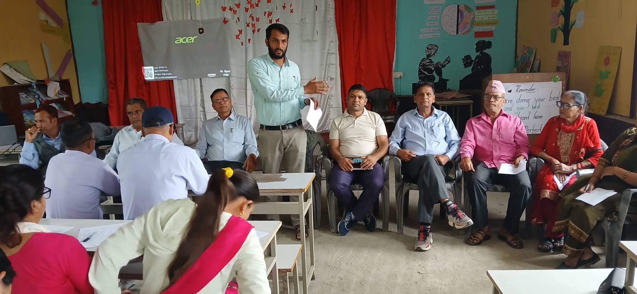 बैठकमा वडाअध्यक्ष दाहालले स्थानीय सरकार सामुदायिक विद्यालयको शैक्षिक सुधारप्रति सधैं प्रतिबद्धरहेको बताए । उनकाअनुसार सामुदायिक विद्यालयको स्तर उकास्न शिक्षक, अभिभावक र स्थानीय